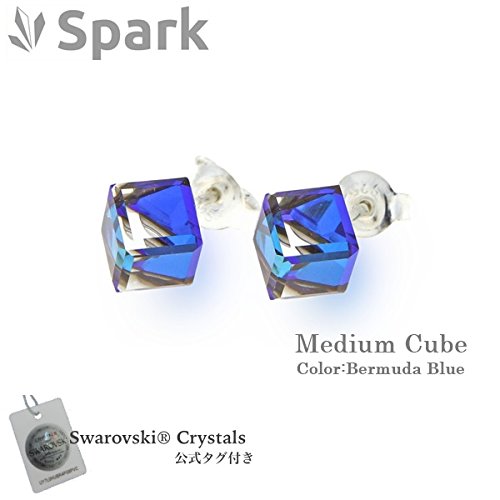 원본상품명: Spark(スパ?ク) スワロフスキ?社製 クリスタル シルバ? 925 キュ?ブ 6mm ピアス 公式タグ付き バミュ?ダブル? K48416BB