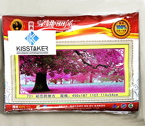 Kisstaker 54x118cm Sakura Cherry Blossom Trees DIY Cross Stitch Embroidery Kit Home Decor Arts, Crafts & Sewing Cross Stitch