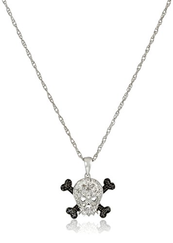 -. Binding : Jewelry -. Brand : Amazon Collection -. Department : women -. EAN : 0696737577573 -. Feature : Edgy sterling silver necklace featuring skull-and-bones pendant studded with white and black diamonds / Rope chain with sP.R.Ing-ring clasp / All our diamond suppliers confirm that they comply with the Kimberley Process to ensure that their diamonds are conflict free. / Black diamonds may have been treated to improve their appearance or durability and may require special care. / Imported / Carat weight listed is the total for all stones. -. Label : Amazon Curated Collection -. Manufacturer : Amazon Curated Collection -. Model : P21062BKSS -. MPN : Amazon Curated Collection -. PackageQuantity : 1 -. PartNumber : Amazon Curated Collection -. ProductGroup : Jewelry -. ProductTypeName : FINENECKLACEBRACELETANKLET -. Publisher : Amazon Curated Collection -. Studio : Amazon Curated Collection -. Title : Sterling Silver Black and White Diamond Accent Skull Pendant Necklace -. UPC : 696737577573