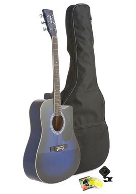 Studio : Fever Publisher : Fever Binding : Electronics Product Description The Fever Dreadnought Cutaway Acoustic Guitar is an ideal instrument for the beginner/intermediate, or young musician. This is a full size 41-Inch guitar body depth and width that brings out balanced tone and plenty of projection to be heard from across the room. The rosewood bridge and fretboard add clarity to each note, and a striking look to the front of the guitar, it has 20 frets and Cutaway design to allow you reach higher notes. This Fever Guitar features nickel hardware and tuners. The guitar includes a protective Acoustic Guitar Gig Bag, a Clip on Chromatic Guitar Tuner and a Set of Guitar Strings. This affordable dreadnought acoustic guitar will certainly get the job done, at a price that anybody can afford. 0