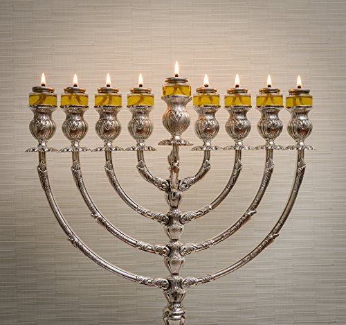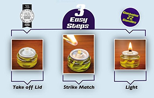 Pre-Filled Menorah 100% Olive Cup Candles - Hanukkah Lights - NO SPIL NO MESS Oil with Cotton Wick in Glass Cup 22 per pack, Burns Approx.3 1/2 Hrs