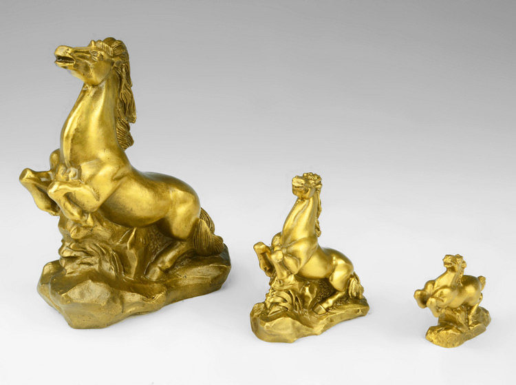 Although it can not melt the ghost horse , but there are people boost , because the bold and uninhibited nature , coupled with robust endless fate , so people have to cheer horse feng shui furnishings as energetic . Horses can bring wealth in circulation , so that the cause can be more smoothly . To play a performance horse feng shui , it must pay attention to the orientation of the display , equine afternoon , so at home or in the workplace can be said that the best south orientation . However, in terms of material selection horses , gold , jade or copper is better, absolutely do not use plastic because it was a bit of spiritual power are not.