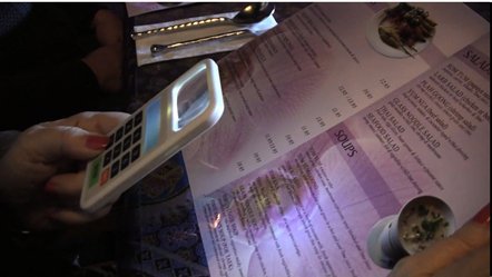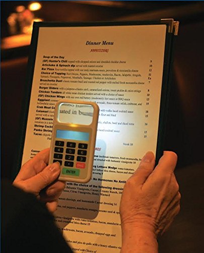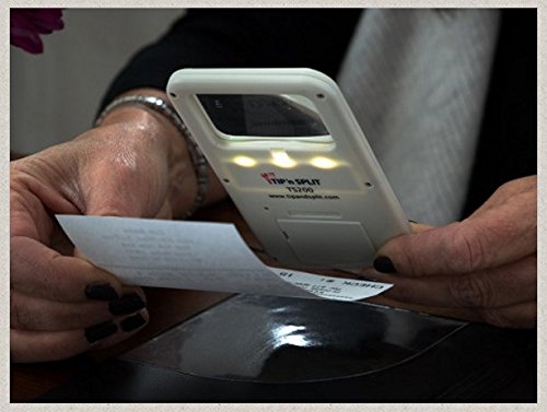 No READING GLASSES NECESSARY! Tip or split your bill in seconds! The perfect companion for dinner, Tip 'n Split Calculating Device helps you easily calculate the tip or split the bill with your fellow diners. This clever device is ideal for individuals who have difficulty reading a menu or bill in a dimly lit restaurant. The pocket-sized device is easy to carry and features a compact and lightweight design. It is easier to use than a cell phone app because it combines an LED magnifier with a calculating feature. The 2x5 magnifying lens and built-in LED light make it easy to read the menu or bill without distracting other patrons in the restaurant. When the bill comes, the built-in calculating feature helps to easily calculate tips or split the bill evenly if the group wants to pay separately. The invention fits perfectly in a pocket or purse and is super lightweight. "When I go out to eat, I can never read the bill or menu, The writing is too small and the restaurant is often too dark. Most of my friends have the same problem. We pass around reading glasses or look for a candle." BUILT-IN MAGNIFIER AND LIGHT SOLVE THESE PROBLEMS.Feature