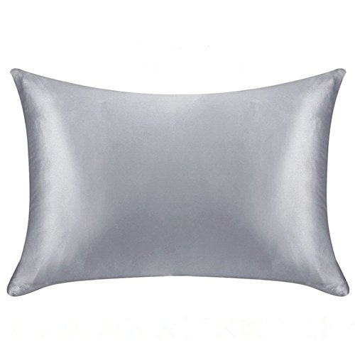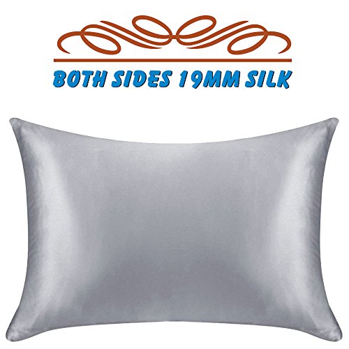19 Momme Natural 100% Pure Mulberry Silk Pillowcase Both Sides Natural Silk Pillow Cover for Hair and Facial Beauty with Zipper 1pc (Standard, Grey)