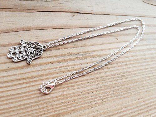 -. Feature : Hamsa/ Hamesh Hand is a sign of protection, to against and defense the evil eye and negative energy. / This also is a very hippie boho style jewelry. / Both pendant and necklace are silver plated. 18 inches long, 2mm thick necklace with lobster-claw-clasp. / Comes with beautiful Li-Jacobs Collection Just for You card and luxury gift envelope. Perfect for any gifts occasion like birthday, Christmas, Mother's Day, anniversary and your Valentine and more...It is also an ideal gift for mother, lover, girlfriend, wife. / Topnotch Customer Service. We offer free return, exchange and 30 days' money back guarantee.