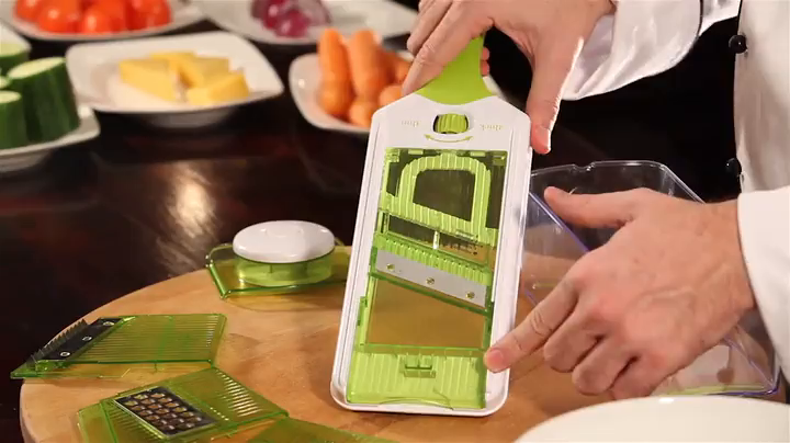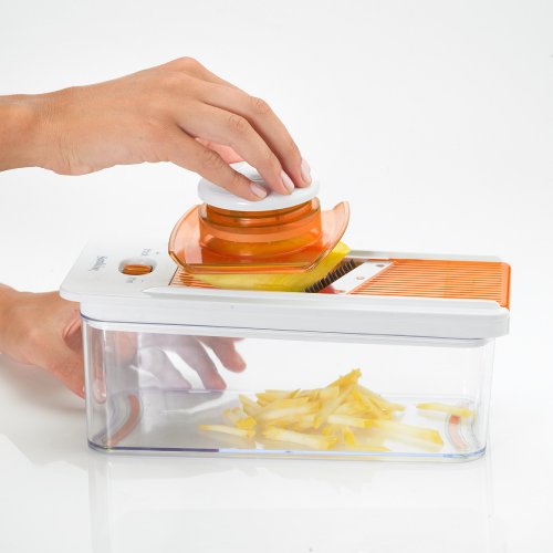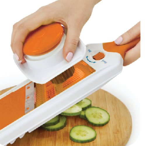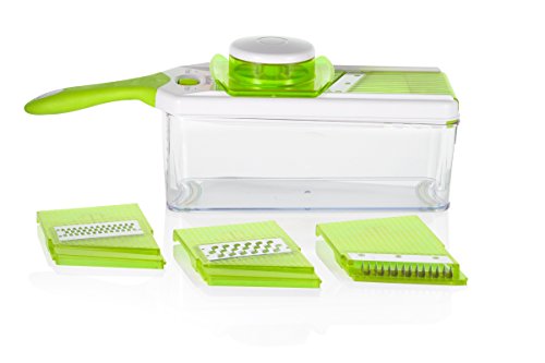 Sunkist (SAP2770G) Softgrip Salad Prep 4-in 1 Adjustable thickness mandoline slicer/grater/julienne prepper with nonskid 1.5 quart Storage Container, Green
