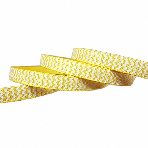 50yd 3/8" White Chevron Printed Yellow Grosgrain Ribbon for DIY