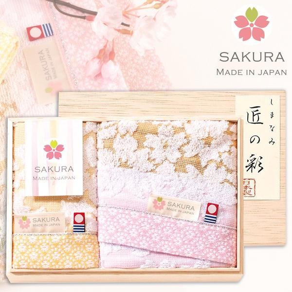 やさしい色合いの中に浮かぶ白桜が印象的なタオル。素材選びから織り、染めまでの工程を追究して今治で織り上げており、使い始めから吸水性が良く、ふんわりとした風合いが長続きします。タオルの端にまで細かなデザインが施されており、ギフトにもピッタリの華やかなタオルです。 |