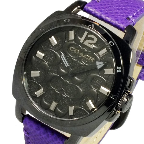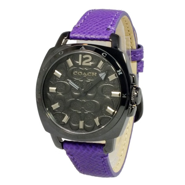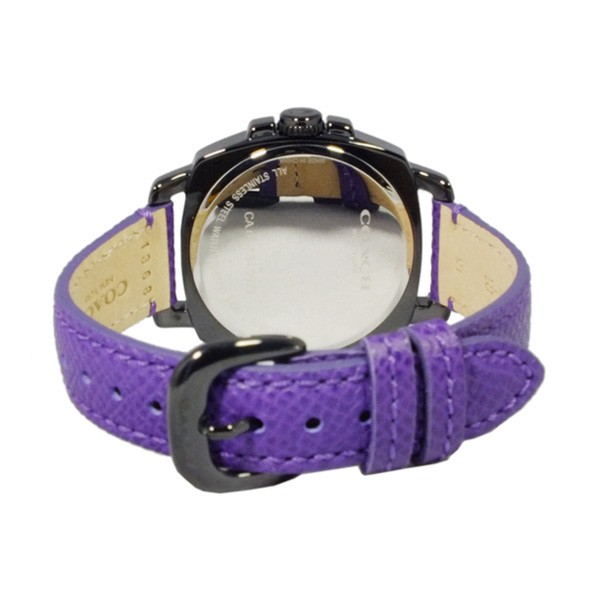 コーチ COACH 時計 ウォッチ 人気 ブランド カジュアル フォーマル  商品仕様:(約)H34×W34×D10mm(ラグ、リューズは除く)、重さ42g ステンレス(ケース)、ステンレス(ベルト) クオーツ、日常生活防水、カラー:ブラック(文字盤)、パープル(ベルト)