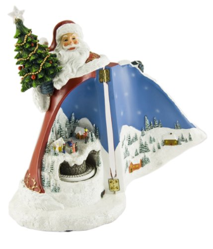 MusicBox Kingdom 53037 Santa with Illuminated and Moving Train Scene Music Box, Plays 8 Different Melodies