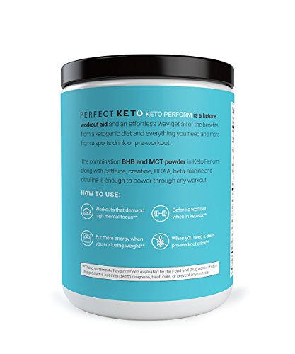 -. Feature : KETO SPORTS DRINK AND PREWORKOUT FOR THE KETOGENIC DIET - Perfect for those who want energy and performance while on the ketogenic diet, but don't want all of the garbage that is out there. Excellent for boosting ketones for fuel for any type of workout. / WHAT YOU NEED FOR OPTIMUM PERFORMANCE - Perfect Keto Perform for ketosis pre-workout packs 7.7g BHB, 5g MCT, with BCAA, creatine, L-citrulline, beta alanine, and caffeine from green tea so you can boost your ketone levels and crush your weightlifting workout. / NO FILLERS OR ADDITIVES - Unlike other exercise pre-workouts, Perfect Keto Perform supplement contains NO fillers, corn starch, or fiber additives. This means that our pre-workout has ZERO carbs and ZERO grams of sugar: just pure performance from keto friendly sources. / INCREASE ENERGY AND EXPLOSIVE PERFORMANCE - Perfect Keto Perform keto pre-workout will help you get all of the necessary fuel you need without any energy crashes. Only clean fuel and increased energy and results for those on a ketogenic diet. / Each container comes with 15 servings of the highest quality combination of keto workout ingredients in a delicious lemon flavor.