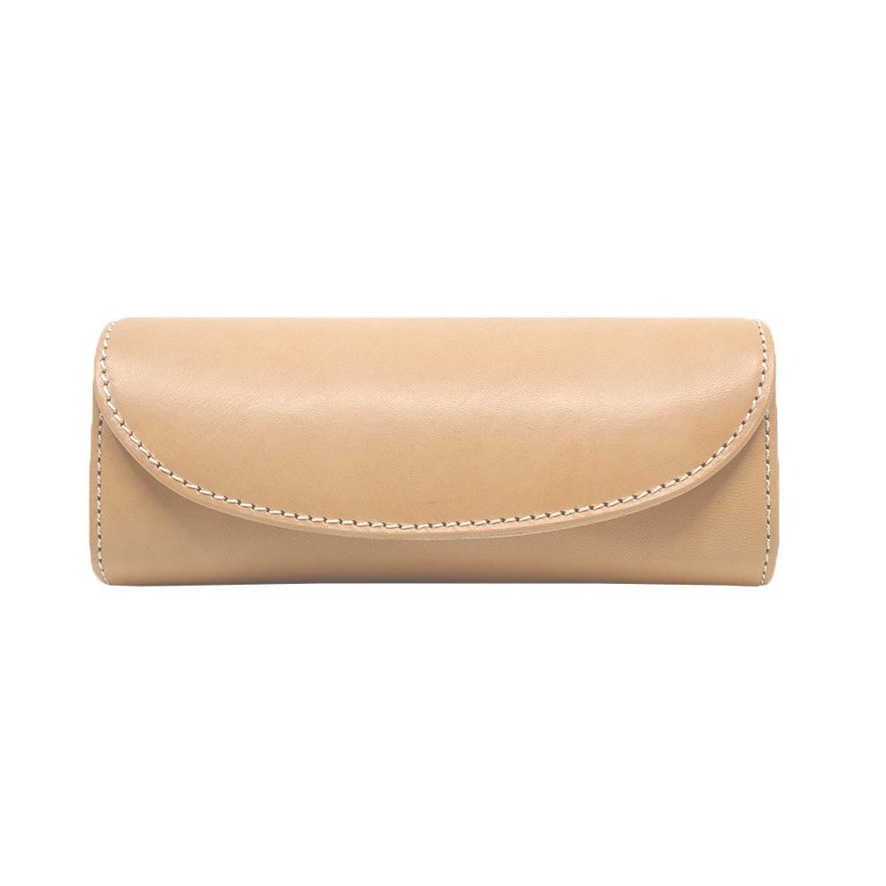 | 硬めの芯材に革を貼りつけたシンプルなグラスケース。 |