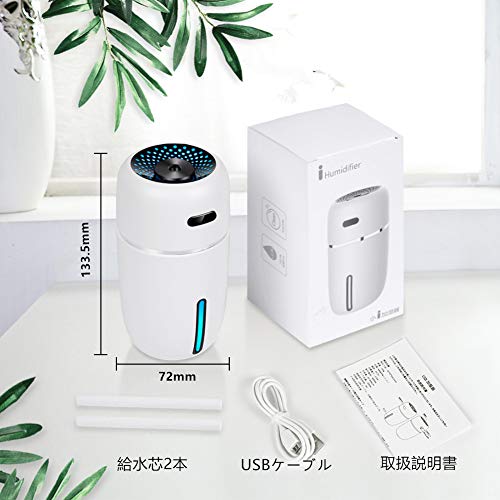 【USBポート付】 卓上や車内に加湿しながら、携帯充電実現! 【商品仕様】 商品寸法:72*72*133.5mm 質量:150g 材質: ABS&PP&シリコン 電源:DC 5V 消費電力:2.5W 動作電流:500MA 加湿量:約35ML/H タンク容量:200ML 運転自動停止:4H 同捆物:USBケーブル、交換用の給水芯1本、日本語取扱説明書、卓上加湿器本体 | 【車載使用】 狭い車内空間で、ストレスを減し、運転に役立ちます。 【オフィスで使用】 デスクの上に置いてもかさばらない小ぶりでシンプルなデザインです。 【お部屋で使用】 生活臭やペットの匂いを一掃し、お部屋を爽やかな匂いで満たします。 | 【操作簡単】 ボトルに水を入れ、付属のUSBケーブルで電源と接続すれば、ワンボタンで気楽に利用開始。 ★★ご注意★★ ※使用する水は必ず水道水を使用してください。ミネラルウォーター、アルカリイオン水、天然水、井戸水、浄水器や温水器を通した水などは使用しないでください。 ※吸水スティックに水を十分にしみ込ませます。吸水スティックを十分に湿らせていない場合、ミストの噴射まで時間が掛かります。 ※給水芯がきちんとセットされていない時、ミストが出ない可能性があります。正しくセットして、又は給水芯を逆にセットしてみてください。 ※ミストの量が減ってしまった場合、吸水芯を交換してください。 |