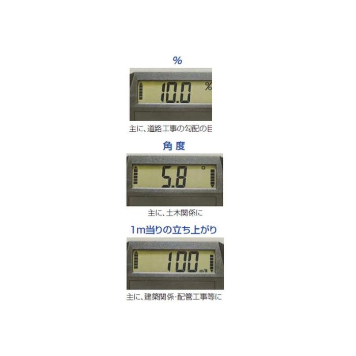 디지탈 표시 최소 단위:첫 시작/1mm/M,각도/0.한 번,경사/0.1%