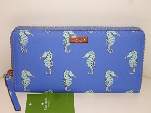 -. Binding : Apparel -. Brand : Kate Spade New York -. Color : Blue -. Department : womens -. EAN : 0687437317866 -. Feature : interior with 12 card slots / Center zipper coin slot / Slip pocket on back / Measures 4" high x 7.75" wide -. ProductGroup : Apparel -. ProductTypeName : ACCESSORY -. Size : Large -. Title : Kate Spade Liberty Street Neda Seaponies Zip Around Wallet -. UPC : 687437317866
