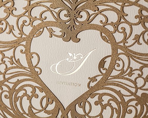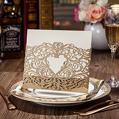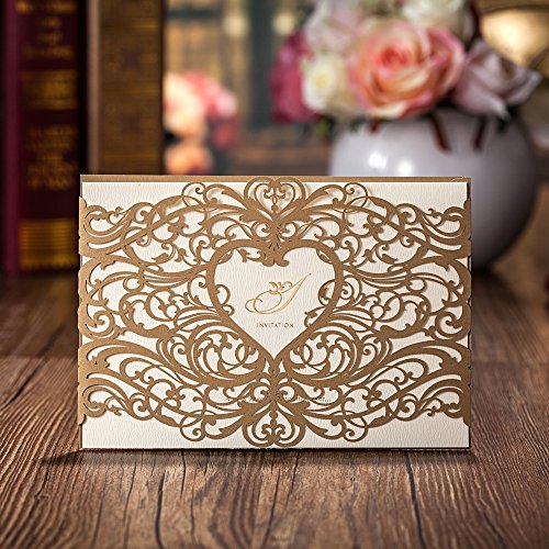 Wishmade 50X Gold Laser Cut Invitations Cards with Heart Hollow Favors Invites Card Stock For Wedding Party Birthday Events CW5018