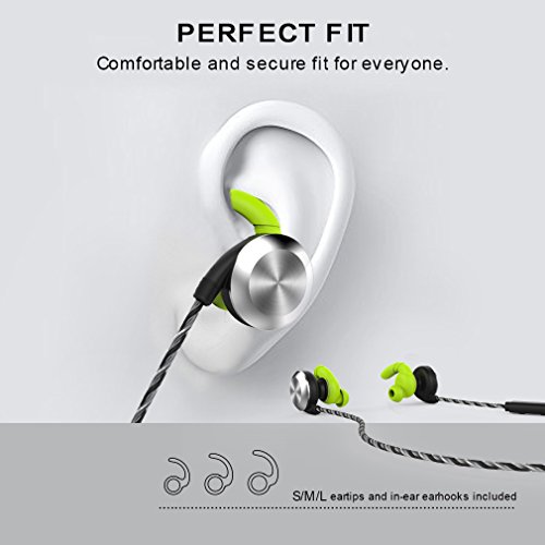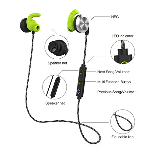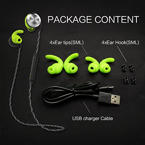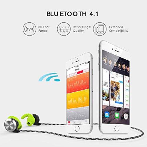 -. Feature : Latest bluetooth 4.1technology, offering you perfect HD stereo sound. And it's easy and fast pairing with smartphones, tablets and other Bluetooth enabled music devices. Can connect with 2 cell phones or tablets at the same time. So you will not miss any important calls. / IPX7 level sweatproof technology and never drop off when you do sports. Semi-closed ergonomic in-ear design to specifically fit the contours of your ears, comfortable for all-day use. With 3 different-sized wing stabilizers, so they stay in place when you're running, gym, fitness, workout, sports & exercise and other activities. / Unique magnet attraction design: Portable, user-friendly and popular MAGNET ATTRACTION design, let the headphones hang like a necklace around your neck, very easy to store into your clothing or bag, and not easy to fall off. / Built-in duarable rechargeable Lithium-poly battery, last up to 6-8 hours talking/ playing time, 2 hours charging time, 200 hours standby time, so you have less time charging and more time doing. Support IOS and Adroid DEVICE POWER DISPLAY / Easy operation: control all functions of your music (volume, sound, song selection) and calls from your phone via our simple-to-use user interface controller.