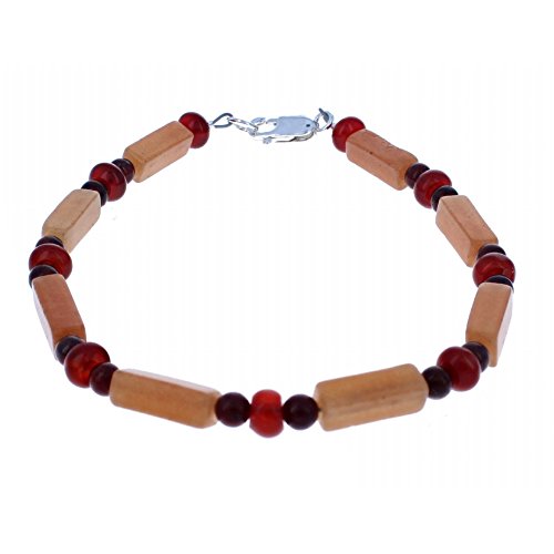 -. Title : Ladies Red Aventurine, Carnelian, Brecciated Jasper & Sterling Silver Beaded Gemstone Anklet