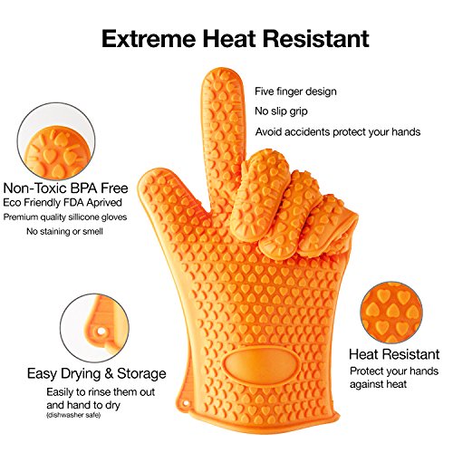 - SUPERIOR NON-SLIP GRIP - Each of our silicone 5-finger gloves comes with textured gripping surfaces to reduce the risk of accidents. Never again worry about slipping plates, hot pans or steamy ovens.