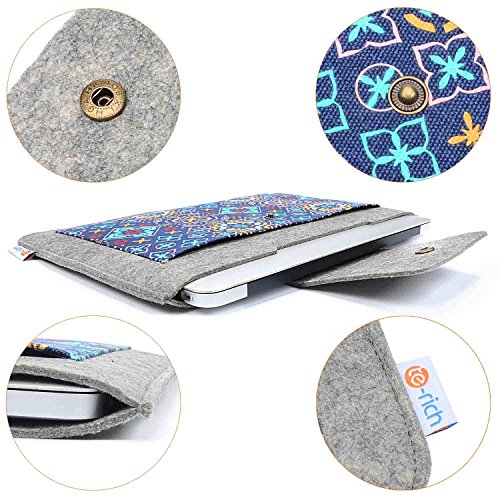 -. Title : Te-Rich Felt and Cloth (Durable, Lightweight, Floral Design) Sleeve Case Bag Protective Carrying Briefcase with Extra Pocket for Apple MacBook Air/Pro Loptops - 11 / 12 /13 Inch