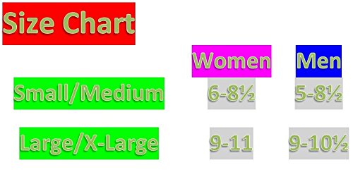 Size Chart - Small/Medium : Women 6-8½ / Men 5-8½ // Large/X-Large : Women 8½-11 / Men 8½-10½.