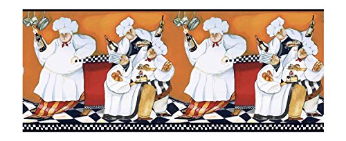 -. Title : New Chefs Prepasted Wallpaper Border Fat Chef - Kitchen Cafe Cooking Wall Decor
