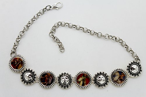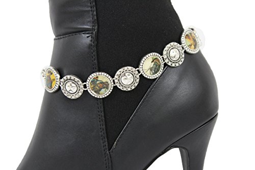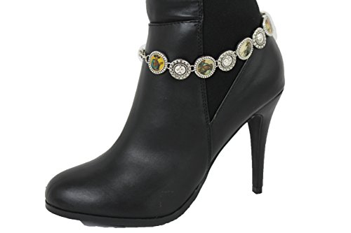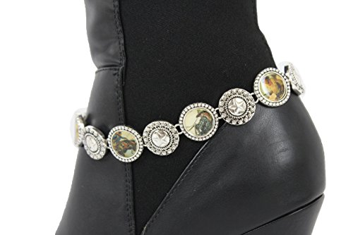 -. Binding : Jewelry -. Brand : Trendy Fashion Jewelry -. Department : Womens -. Feature : Condition: Brand new Made in USA / You are buying a single strap bracelet (one side) / Color: Silver metal chains and charms + colors P.R.Ints / Special And Unique Western Ladies Fashion Single Boot / High Heels Shoes Strap Chain Charm Anklet Bracelet - One Side / Size: 10"-14 1/2" long (total length is about 15" long) -. Label : TFJ -. Manufacturer : TFJ -. Model : TFJ09 -. MPN : TFJ09 -. PartNumber : TFJ09 -. ProductGroup : Jewelry -. ProductTypeName : FASHIONNECKLACEBRACELETANKLET -. Publisher : TFJ -. Size : One size - adjustable size -. Studio : TFJ -. Title : TFJ Women Fashion Boot Bracelet Bling Metal Chains High Heel Texas Star Cowboys Charm Silver