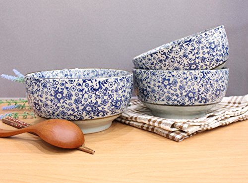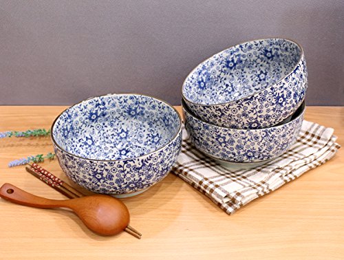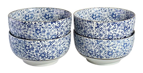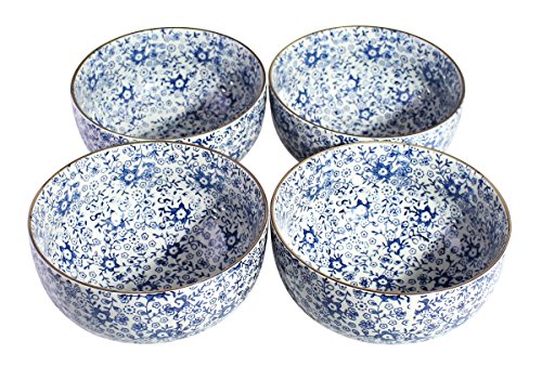 Beautiful Decorative Antique Oriental Ceramic Floral Patterned Bowl, Set of 4