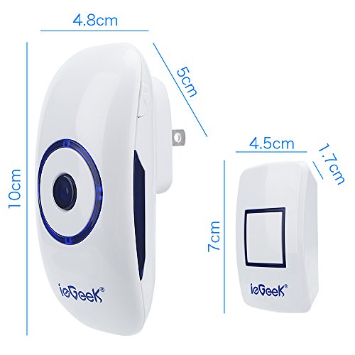 Wireless Doorbell, ieGeek Waterproof Door Bell Chime Kit for Home with 1 Plug-In Receiver and 1 Push Button Transmitter Operating at 1000 Feet Range, 36 Melodies, 4 Level Volume, LED Indicator (White)