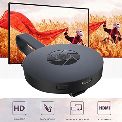 -. Feature : Supports IOS and Android, supports auto upgrade online. Compatible with DLNA and Mirracast mode, you can switch the mode on different device. / Rounded cute size, just like a cookie, with a magnet connected the HDMI cable on the back, which saves the space so that it is portable for you to use it anytime and anywhere. / Just plug and play, no needed any other drivers, and with a switching button, you could switch Airplay mode or Miracast mode easily. Only 3 steps to enjoy the media on large screen: Plug->Connect->Mirroring. / You can connect PC, smartphone to TV or projector, whatever you see on your mobile device's display, you can mirror onto the HDTV or projector, create your own exclusive cinema, enjoy different audio-visual feast. / Wireless display, from out of the shackles of cable, the meeting has become intelligent and efficient. Perfect for business and education presentation.
