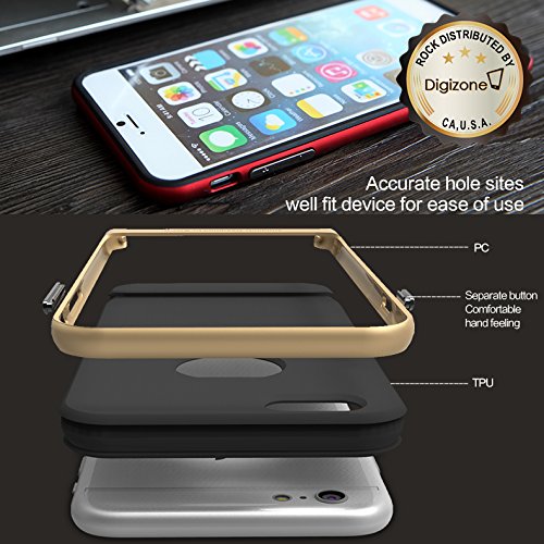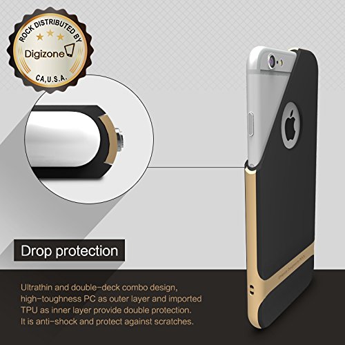 iPhone 6/6s 4.7" Case,ROCK® [Royce] Anti-scratch Drop Protection Ultra Thin Slim Fit Dual Layered Heavy Duty Armor Hybrid PC+Soft TPU Protective Shell Case for Apple iPhone 6/6s - Champagne Gold/Black