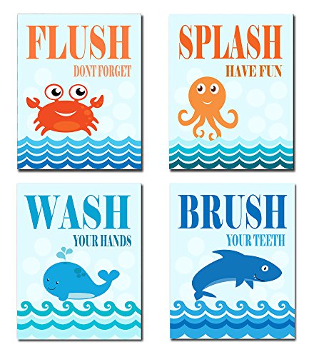 The Kids Room By Stupell Sea Creatures Bathroom Rules 4-Pc. Rectangle Wall Plaque Set, Proudly Made in USA