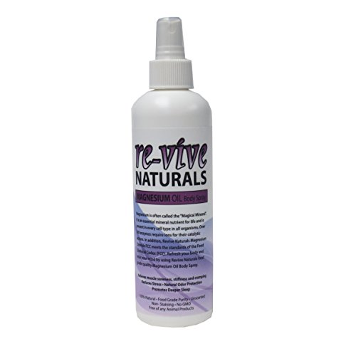 Bring the invigorating power of magnesium into your life with Re-vive Naturals Magnesium Oil Spray. Relax and refresh your body with food-grade magnesium chloride, an essential mineral for many biochemical functions. Extracted from the mineral-rich waters of the Dead Sea, these nutrients are free of chemical impurities, safe for use internally and for skin application. Suitable for oral use or as a massaging oil, this highly-concentrated formula contains 600 milligrams of elemental magnesium in one teaspoon. Available in 8-, 16-, 32-, 64-, and 128-ounce sizes, this oil offer a cost-effective solution and quantity for any budget or use requirement. This pack includes an 8-ounce spray bottle.Feature