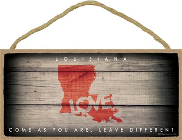 (SJT13551) Louisiana - State Outline With "Love" And State Motto 5" x 10" Wood Plaque Sign