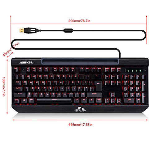 게이밍 키보드 Riitek 청축 메카니칼 게이밍 키보드 USB유선 접속,키 캡은,레이저 조각과 UV인쇄(마무리)결과를 채용하고, 플러그 인LED램프 백 라이트,5프리 setback 라이트