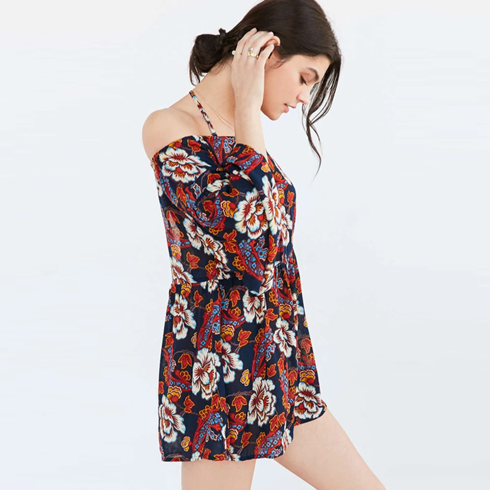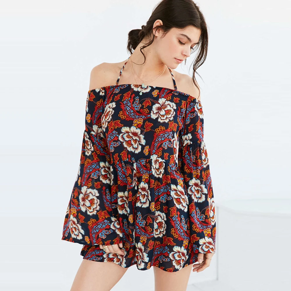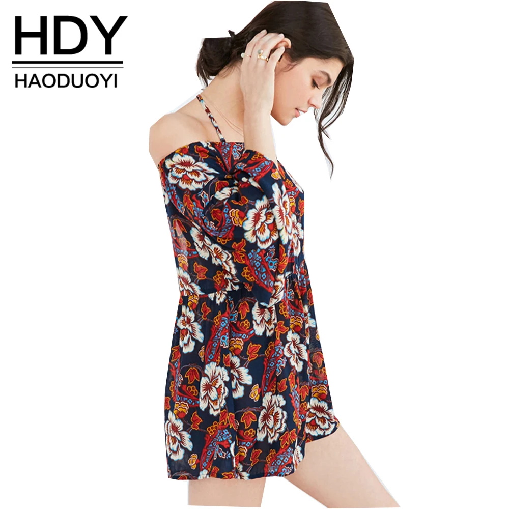 HDY Haoduoyi Sexy Floral Print Rompers Casual Slash Neck Spaghetti Strap Bodysuit Loose Long Sleeve Cut Out Back Playsuits | |||||||||||||||||||||||||||||||||||||||