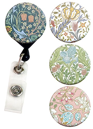 Buttonsmith William Morris Retractable Tinker Reel Badge Reel with Rotating Alligator Clip and Swappable Tinker Tops - Made in the USA, 1 Year Warranty