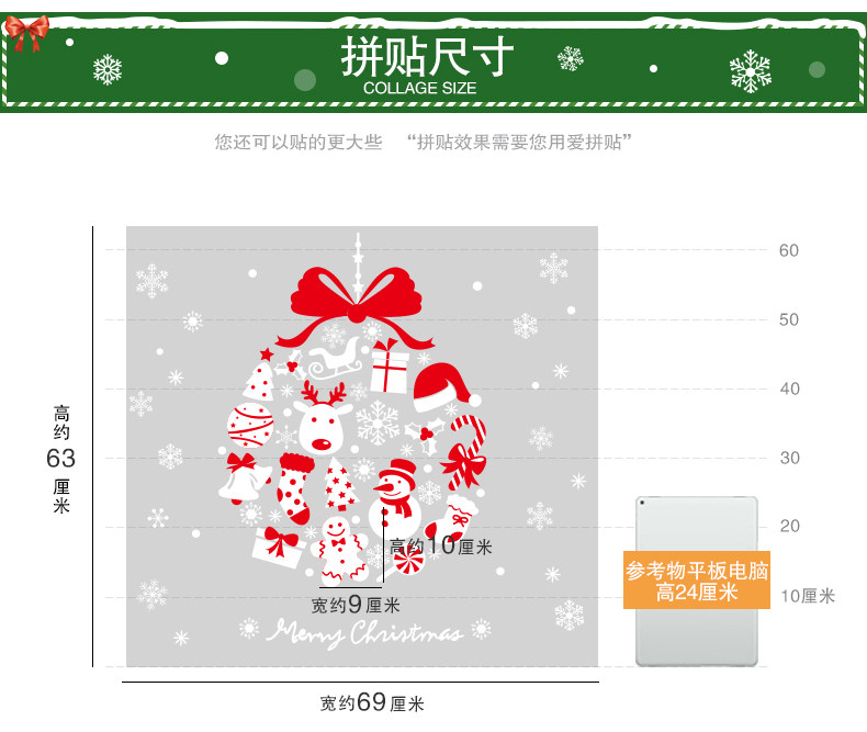 圣诞节装饰贴纸橱窗玻璃自粘吊球墙贴店面布置气氛圣诞蝴蝶结花球