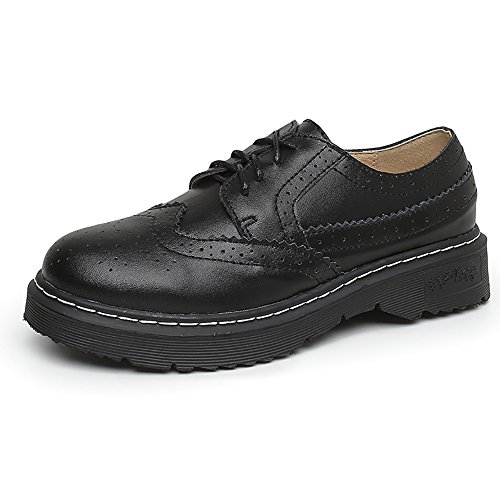 -. Title : Meeshine Womens Brogue Oxfords Leather Low Flat Heel Lace Up Wingtip Vintage Dress Shoes