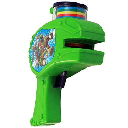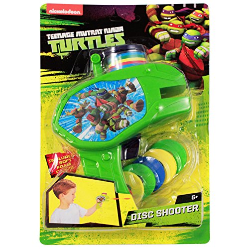 This slime-green blaster comes with 6 colorful soft foam discs, perfect for hours and hours of outdoor ninja play. Each disc shooter features all four of the ninja turtles - Donatello, Raphael, Leonardo and Michelangelo.