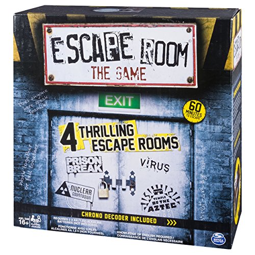 -. Feature : Bring home the fun and excitement of an escape room to play with friends and family at home! / You have 60 minutes to enter the correct keys on the Chrono Decoder to escape: it will count down remaining time, and emit intense sounds to let you know you're almost out of time. / Features 4 thrilling escape rooms: Prison Break, Virus, Nuclear Countdown, and Temple of the Aztec. / Escape Room The Game is for 3-5 players ages 16 and up, and requires 3 AA batteries (not included).