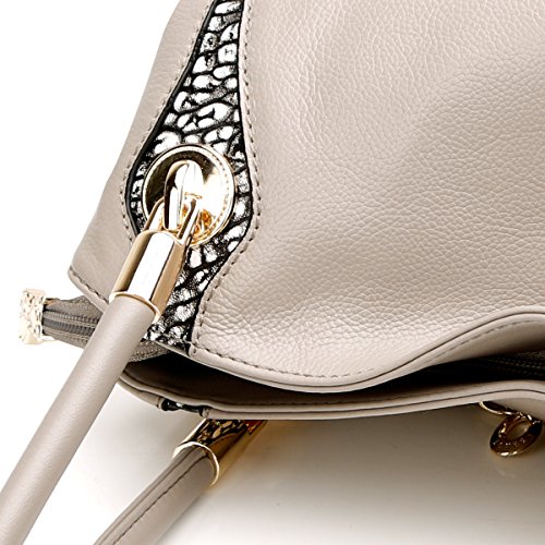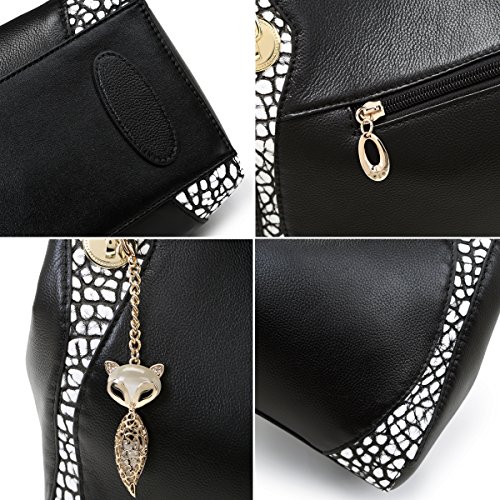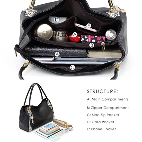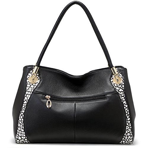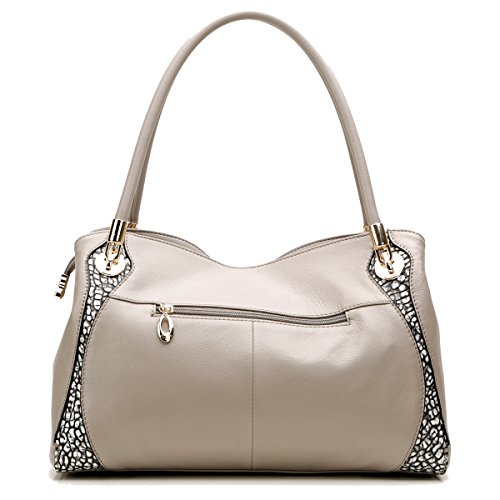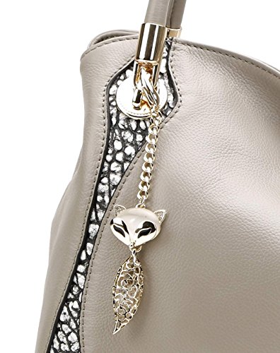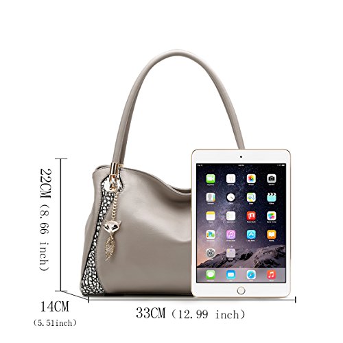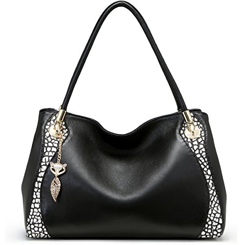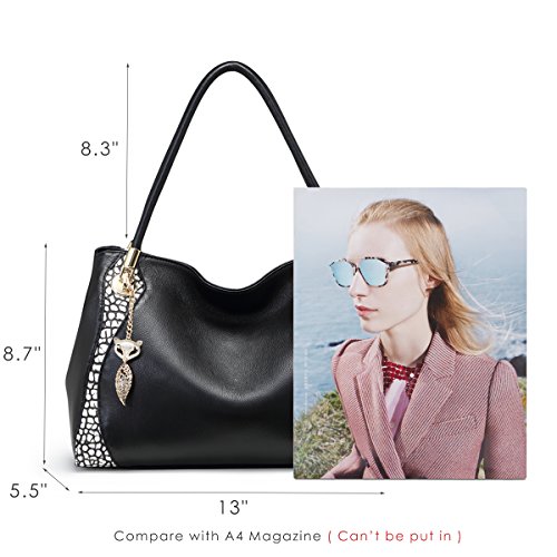 -. Feature : GENUINE LEATHER - Premium geniune cowhide leather with soft and comfortable feeling. Polyester silk lining and quality shiny hardware can stay in good condition even if used for a long time. / VINTAGE STONE PATTERN - Concise shoulder bag with the decoration of vintage stone pattern and exquisite fox pendant, makes yourself elegant and stylish. / DIMENSIONS - Measures about 13" L x 5.5" W x 8.7" H, handle about 8.3" long. Easily hold you books, iPad, phone, umbrella, wallet, cosmetics and other stuff. / STRUCTURE - Comes with 2 large capacity main compartments, 1 zipper compartment, 1 side zipper pocket, 1 phone pocket, 1 card pocket and 1 back zipper pocket, meeting your daily needs. / IDEAL FOR ANY OCCASION - Perfect for dating, office, shopping, travel, party, banquet or special events. Also can be an ideal gift for yourself or for that someone special.