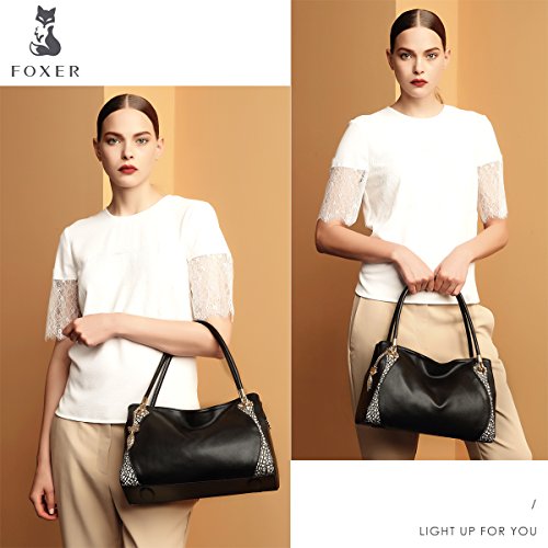 -. Title : FOXER Women Genuine Leather Handbag Purse Top Handle Tote Bag