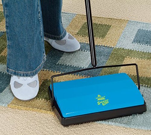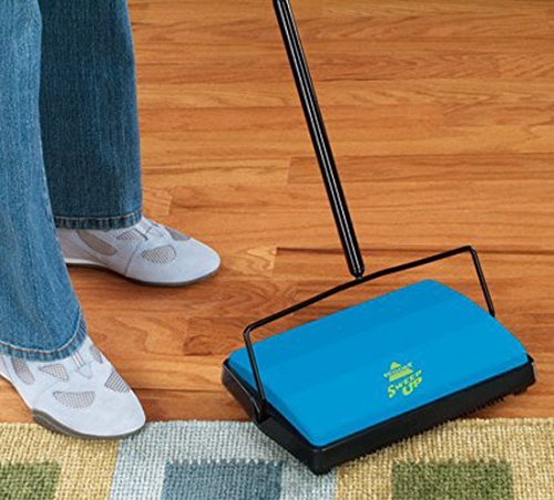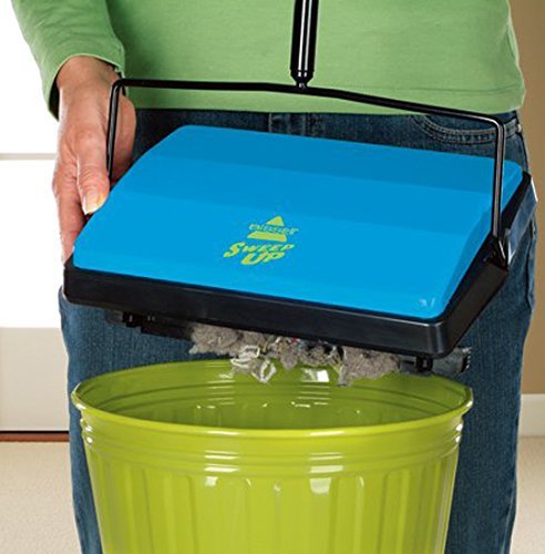 -. Feature : Unique brush picks up lint, crumbs, and dirt on forward and return motion with edge cleaning / With no cord to plug in, or dust pan to deal with, the Sweep Up is always convenient to use / Can be used on all floor surfaces and the handle lies flat under furniture / Does not require a belt / Picks up lint, crumbs, and dirt on forward and reverse motion / Convenient to use - no cord to plug in / Can be used on all surfaces / Easy to empty dirt pans / 7.75L X 11W X 42H 2.85 lbs.