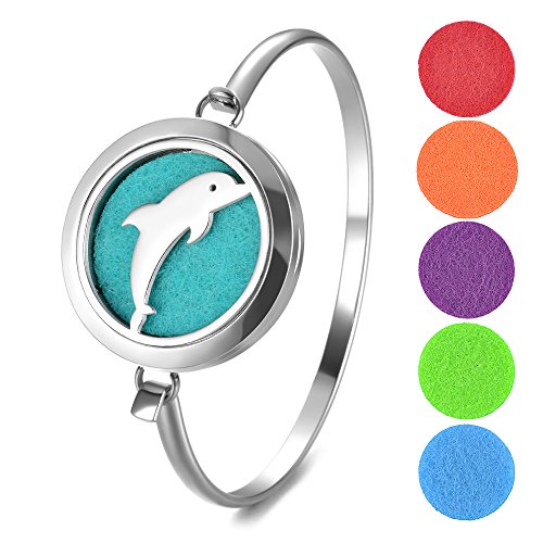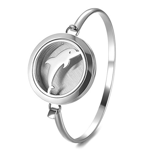 Elegant Dolphin Design Essential Oil Diffuser Locket Bangle Made of hypo-allergenic premium 316L stainless steel, duarable and never fade or dim even with long time use