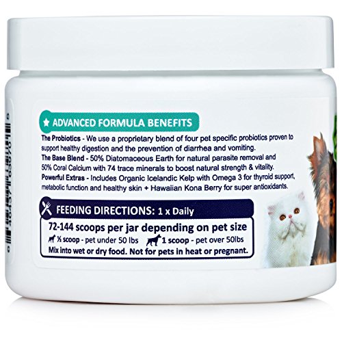 -. Feature : PROMOTES HEALTHY DIGESTION: Don't let your best friend suffer from digestive issues or bacterial imbalance! Probiotics are known as the "good bacteria" that live in the gut and sometimes our furry friends are deficient. Our upgraded formula uses the best probiotics for dogs available that support healthy digestion and immune system. / RELIVES COMMON PROBLEMS: Probiotics can help alleviate an entire range of issues including diarrhea, irritable bowels, vomiting, itching, scratching and excessive shedding. Taken daily it can prevent future cases of vomiting, tummy upsets and those nasty trips to the sink or hose downs! / NONE OF THE BADDIES: Raw Instinct is a small company that cares! That's why we spend more to give you a base of 50% Coral Calcium with 74 trace minerals to boost natural strength and vitality. As well as 50% Diatomaceous Earth, a completely safe natural parasite remover to support your best friend's health (even when they eat nasty things outside). / UPGRADED BLEND: Our upgraded blend is an easy to dispense powder, it's so stealth like your dog won't even notice it. Carefully formulated by veterinary experts we started with a blend of the most effective bacterias with a whopping 20 Billion CFUs. Then we added Organic Icelandic Kelp proven to support thyroid health in dogs, with Omega 3 for a shiny coat. To top it off we added Hawaiin Kona Berry as a super antioxidant to give it an extra kick. / GUARANTEED TO WORK: Yeah that's right. We are so confident you'll love this that we actually don't want your money if it doesn't work for your pet. All of our products are made in a FDA approved facility in the USA and we are proud of that. So if you don't think this is the best probiotic for dogs powder we'll give you a no questions asked refund. You can even keep the probiotics.