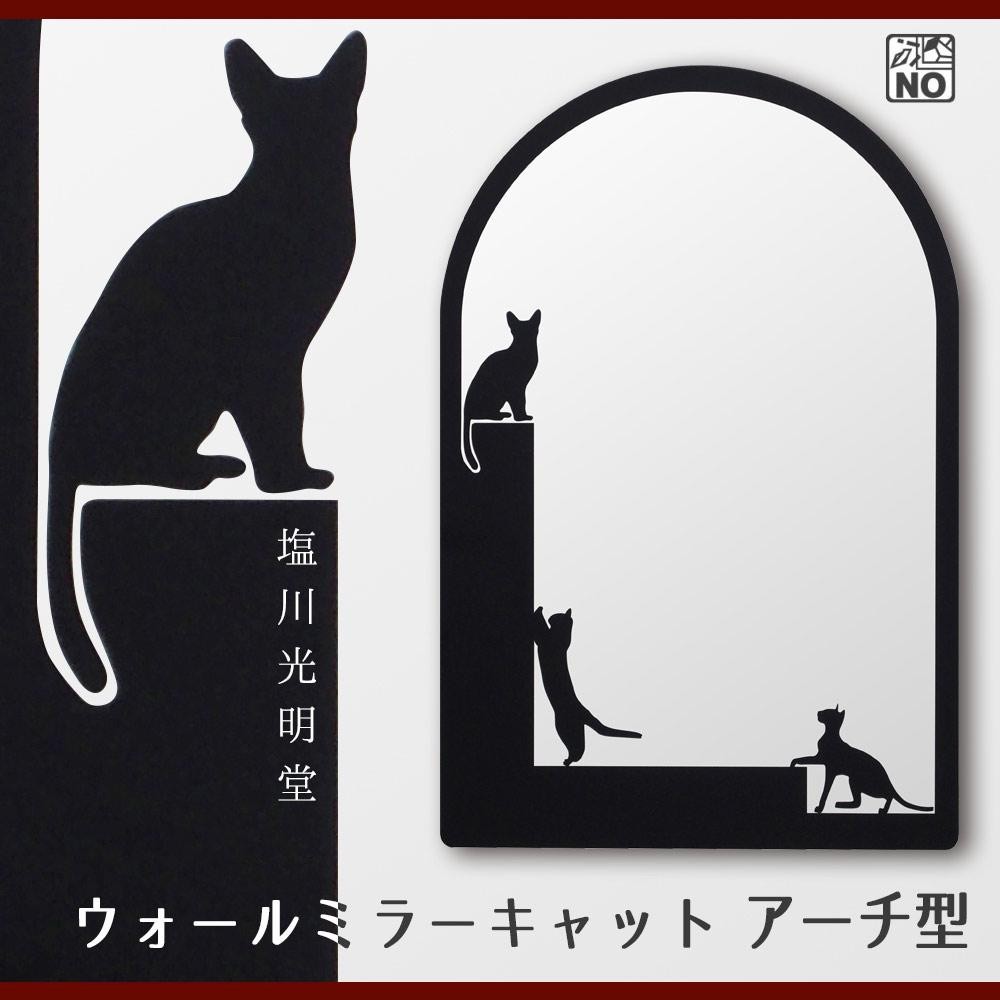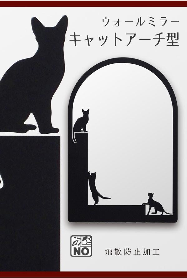 猫のシルエットがかわいいウォールミラー♪