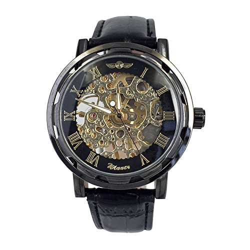 -. Title : Winner (ウイナー) ブラック 手巻き ムーブメント 皮革 素材ストラップ 男性用ステンレス鋼の腕時計 WIN-K0022 (並行輸入品) [並行輸入品]