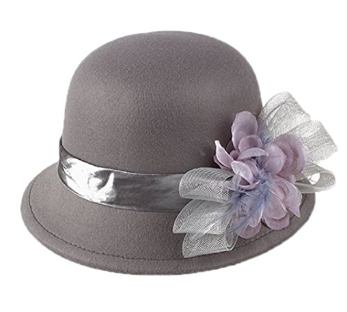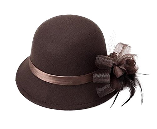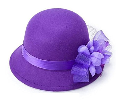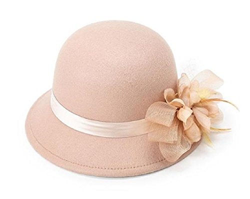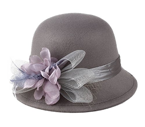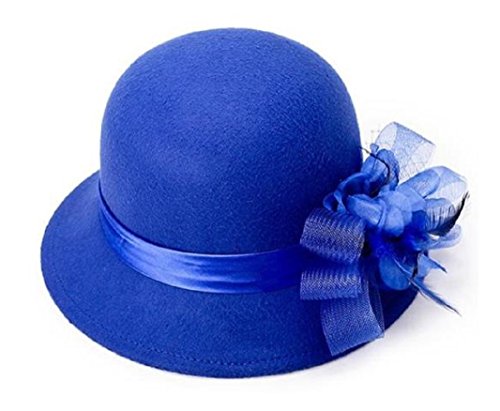 (FUNNY365)/Accessories/Hats/DIRECT FROM USA/FUNNY365 Womens Flower Felt Cloche Bucket Hat Tulle Dress Winter Cap Fashion