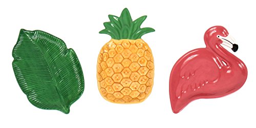 Flamingo Palm Frond and Pineapple Shaped Ceramic Serving Plates Set of 3